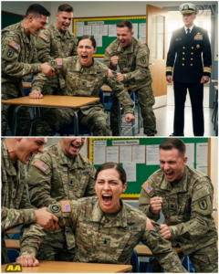 Barnes, Davies, and Jenkins froze, their hands still clutching the torn fabric of Maya’s uniform, their faces draining of color. The realization of their catastrophic mistake hit them with the force of a tidal wave. They hadn’t just assaulted a fellow soldier; they had insulted a member of the Admiral’s own family. They had, in essence, spat in the face of the U.S. Navy itself.