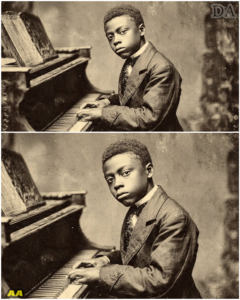 Thomas sat at the piano with a posture that mirrored the quiet dignity of Samuel Carter, another child of the diaspora whose intelligence left the scholars of 1859 in a state of confounded disbelief. Dressed in the formal attire of a society that viewed him as an anomaly, Thomas leaned into the music, his small hands navigating the keys with the precision of a master. He was the Black boy who played piano like Mozart—but never spoke a single word. To those who watched him, he was a mystery; to Thomas, the music was the only language that had never betrayed him.