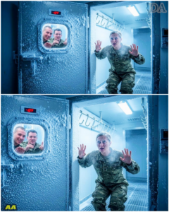 When the morning shift corporal unlocked the freezer at 0600, he didn’t find a corpse. He found Maya Vance standing upright, her uniform stiff with ice, her eyes fixed on the door with a terrifying, hollow intensity. She didn’t say a word. She walked past him, her joints cracking, and headed straight to the infirmary. She refused to name her tormentors to the medics. She knew that a formal report would lead to a slap on the wrist and a lifetime of being labeled a “snitch” by the rest of the boys’ club. No, Maya wanted something more permanent than a court-martial.