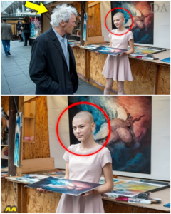 Maya’s head was shaved, a visible sign of the aggressive chemotherapy she was undergoing, yet she stood tall, holding one of her abstract canvases with a quiet, resilient pride.