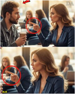 The morning rain had turned the city into a blurred canvas of grey umbrellas and splashing tires, driving everyone into the warmth of “The Daily Grind,” a popular downtown café. Every table was occupied by people hunched over laptops or lost in quiet conversations. Sophie, a rising architect with a reputation for sharp intuition and even sharper designs, sat at her usual corner table. She was dressed in a professional navy blue blouse, her blonde hair falling in elegant waves as she reviewed a set of blueprints on her tablet.