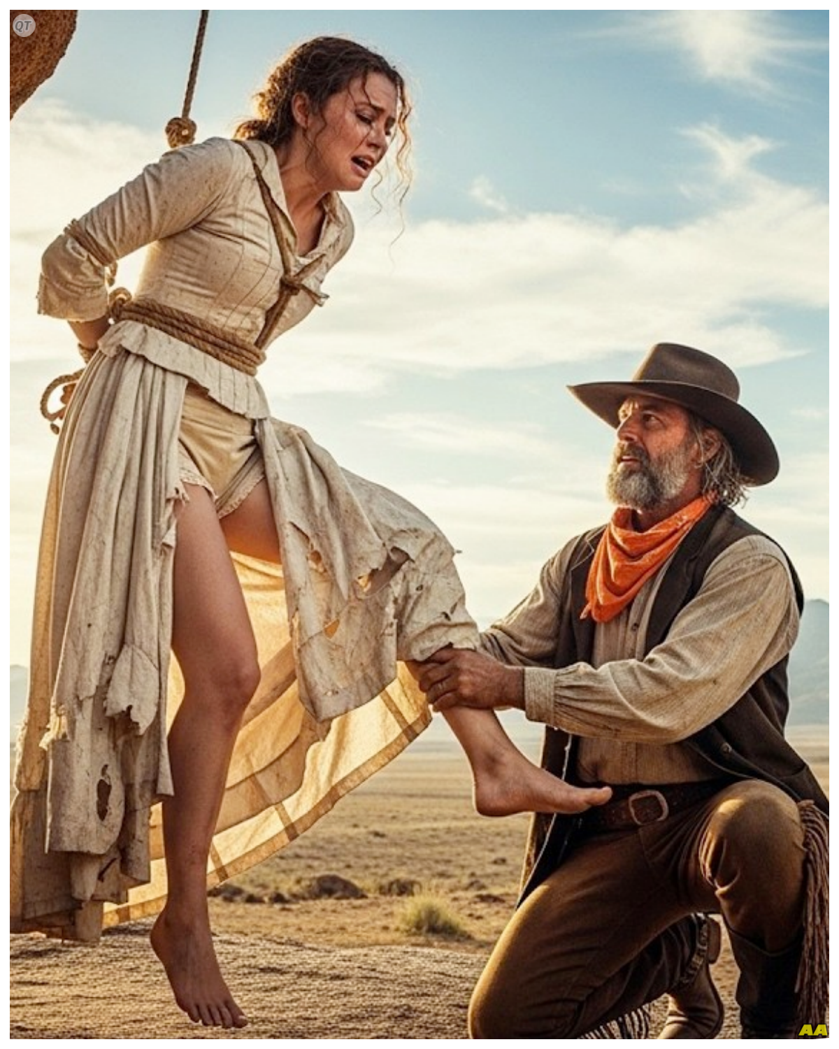 He shifted closer, steadying her shaking legs as the rope scraped harder against stone.