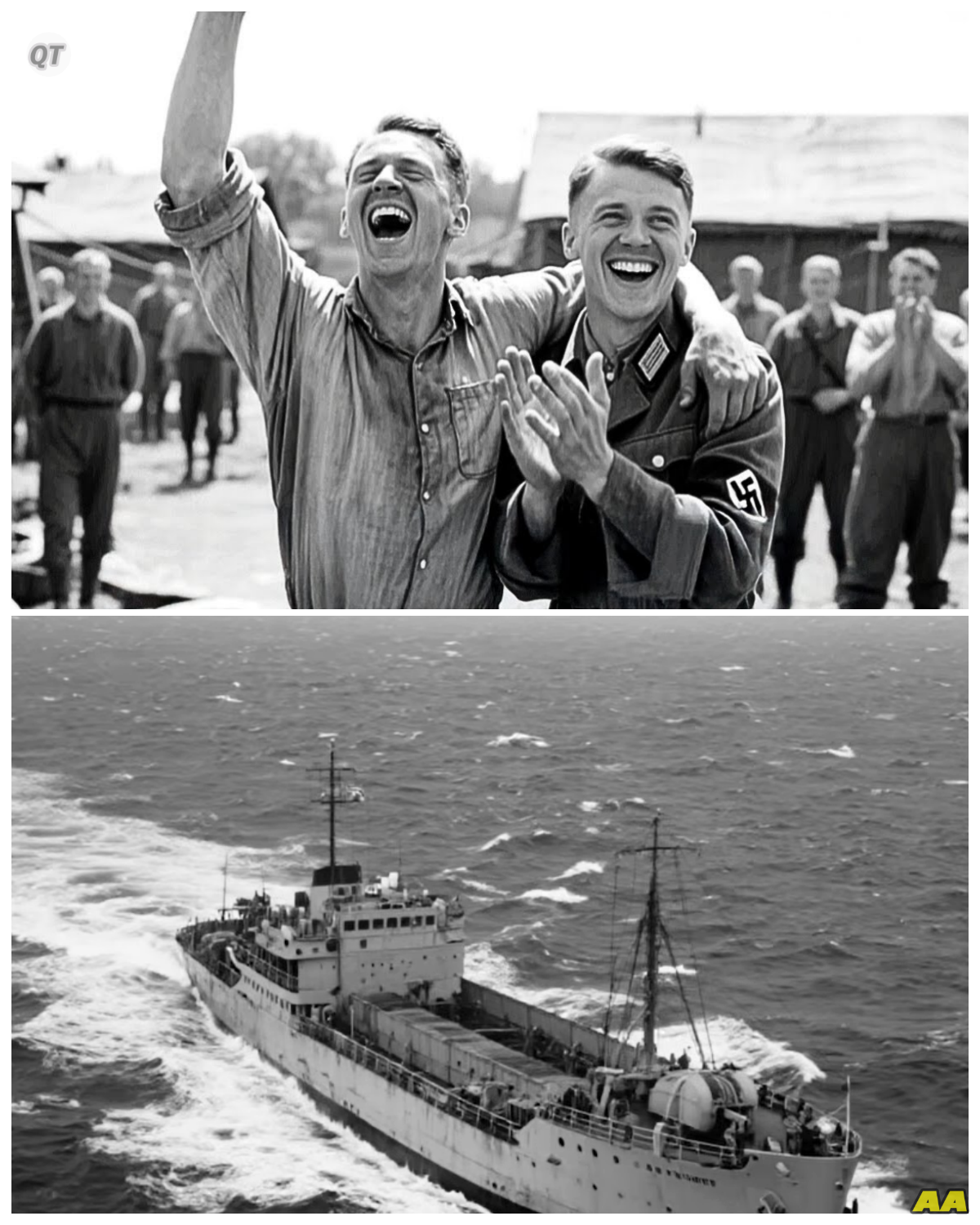 Cargo ships loaded with prisoners making slow progress across an Atlantic that still held dangers despite Germany as surrender.